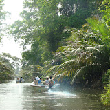 We maken vandaag een boottocht over het Dutch Channel, een 100 kilometer lange waterweg, die nog door de Hollanders aangelegd is. Dit kanaal verbindt kaneeltuinen, kokospalmplantages en kleine dorpjes in het achterland met de havens aan de kust. We stappen in ons bootje . Langs het kanaal worden stenen gebakken en staan hutten van steen, riet en hout.